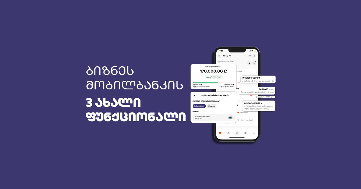 საქართველოს ბანკის ბისნეს მობილბანკი ბიზნესის საჭროებებზე მორგებულ ყველა ფუნქციონალს ერთ აპლიკაციაში აერთიანებს, რაც ფინანსების მართვასა და ბიზნესის ყოველდღიურ საქმიანობას ამარტივებს. ამჯერად აპლიკაციას სამი ახალი ფუნქციონალი დაემატა, რომლებიც ბიზნეს მომხმარებლების ინტერესების გათვალისწინებით შეიქმნა: