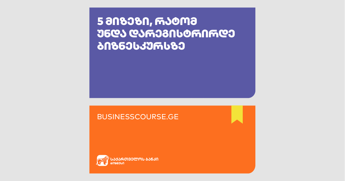 ბიზნესკურსის შესახებ მეტის გაგებასა და პლატფორმაზე რეგისტრაციას ვებგვერდზე შეძლებ.