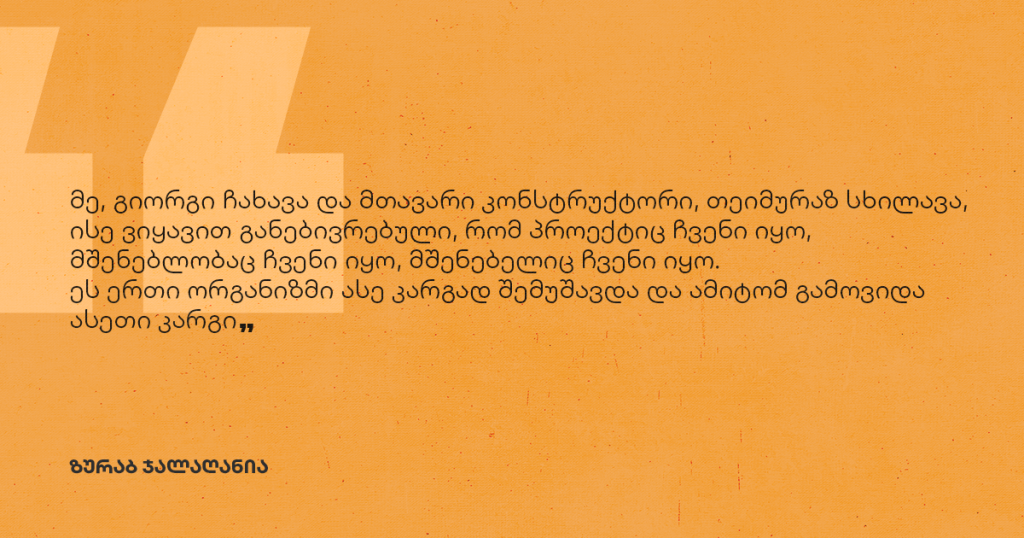 სწორედ ამ დაკვირვებით შექმნა პროექტები საქართველოში და მის გარეთ და იმავე ფილოსოფიური დატვირთვით ააგო შენობა, რომელზეც საუბარი არასდროს წყდება.