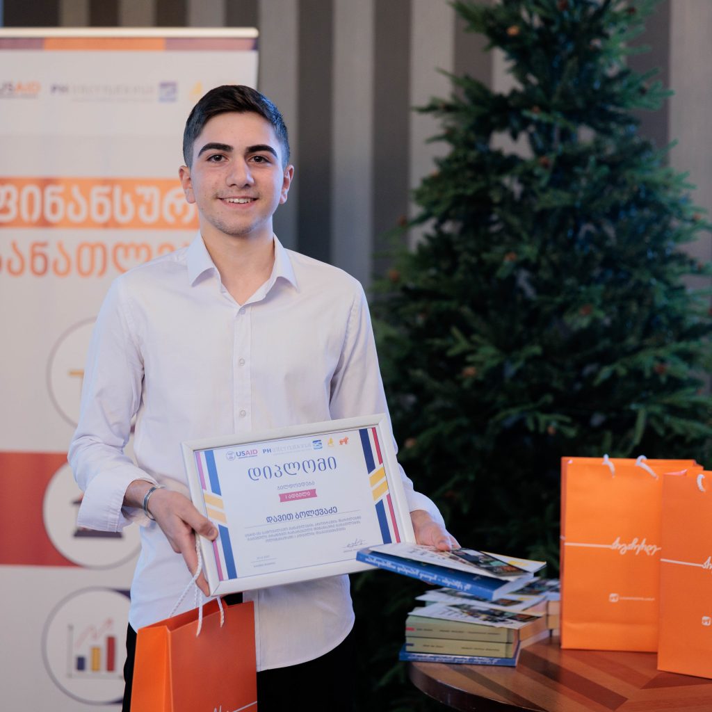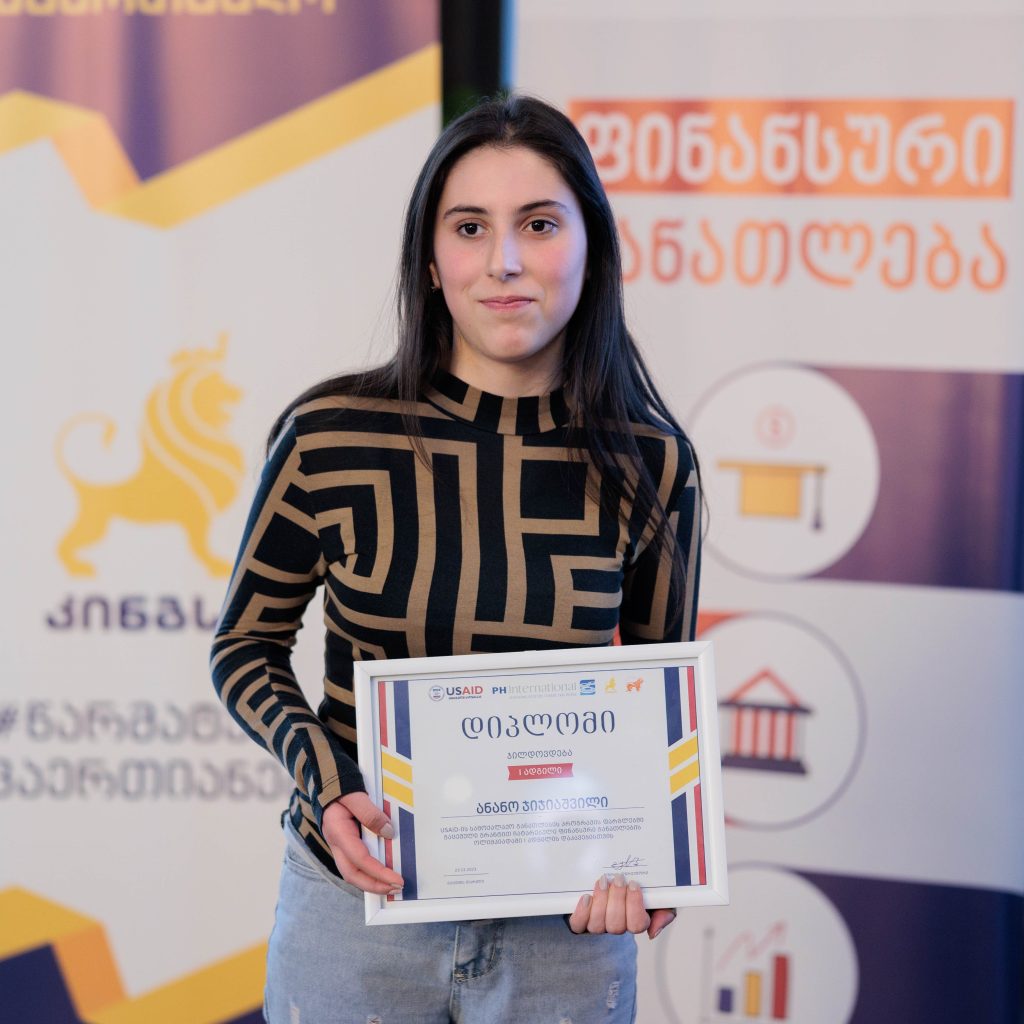 “თბილისის ნიკოლოზ ბარათაშვილის სახელობის 212-ე საჯარო სკოლის მოსწავლე ვარ. ოლიმპიადის შესახებ ინფორმაცია “სამოქალაქო განათლების” მასწავლებელმა მოგვაწოდა. მინდოდა, სხვადასხვა მიმართულებით გამომეცადა თავი, მინდოდა, მცოდნოდა, ვხედავდი თუ არა საკუთარ თავს ფინანსების სფეროში. ეს ოლიმპიადა კი კარგი საშუალება აღმოჩნდა ამისთვის“.