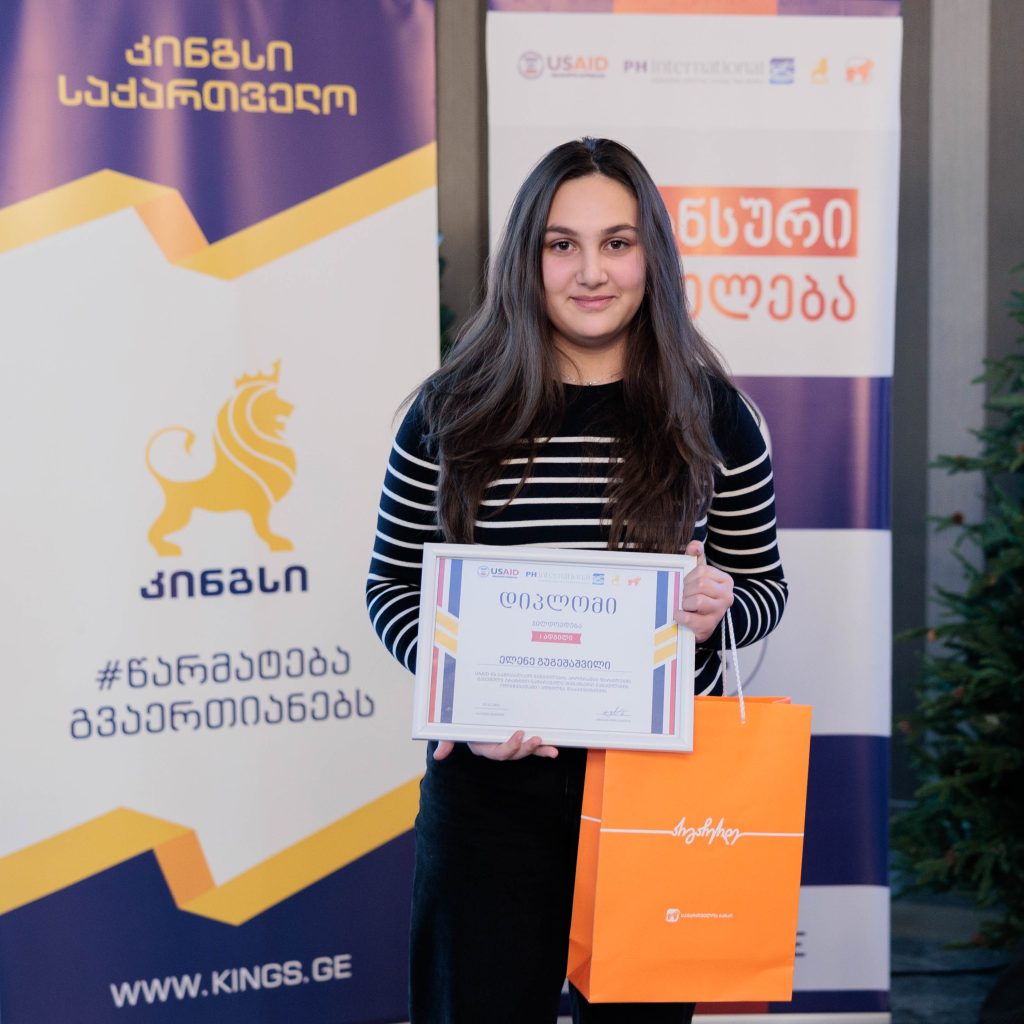 “ჩვენს სკოლას ხშირად სტუმრობენ კინგსის წარმომადგენლები და ასე მივიღე ინფორმაცია. კინგსის ოლიმპიადებშიც ბავშვობიდან ვიღებ მონაწილეობას, მაგრამ ასეთი მასშტაბის გამოცდილება პირველი იყო. ოლიმპიადის ჩატარებამდე დიდი ცოდნა მოგვცეს, გვამზადებდნენ ამისთვის — სპეციალისტებთან გვქონდა შეხვედრა, გვყავდნენ ტრენერები, ასევე გვქონდა ელექტრონული სახელმძღვანელოები, რომლითაც ვემზადებოდით. დიდი გამოცდილება შემძინა როგორც ოლიმპიადის, ისე ბიზნეს განათლების მხრივაც.”