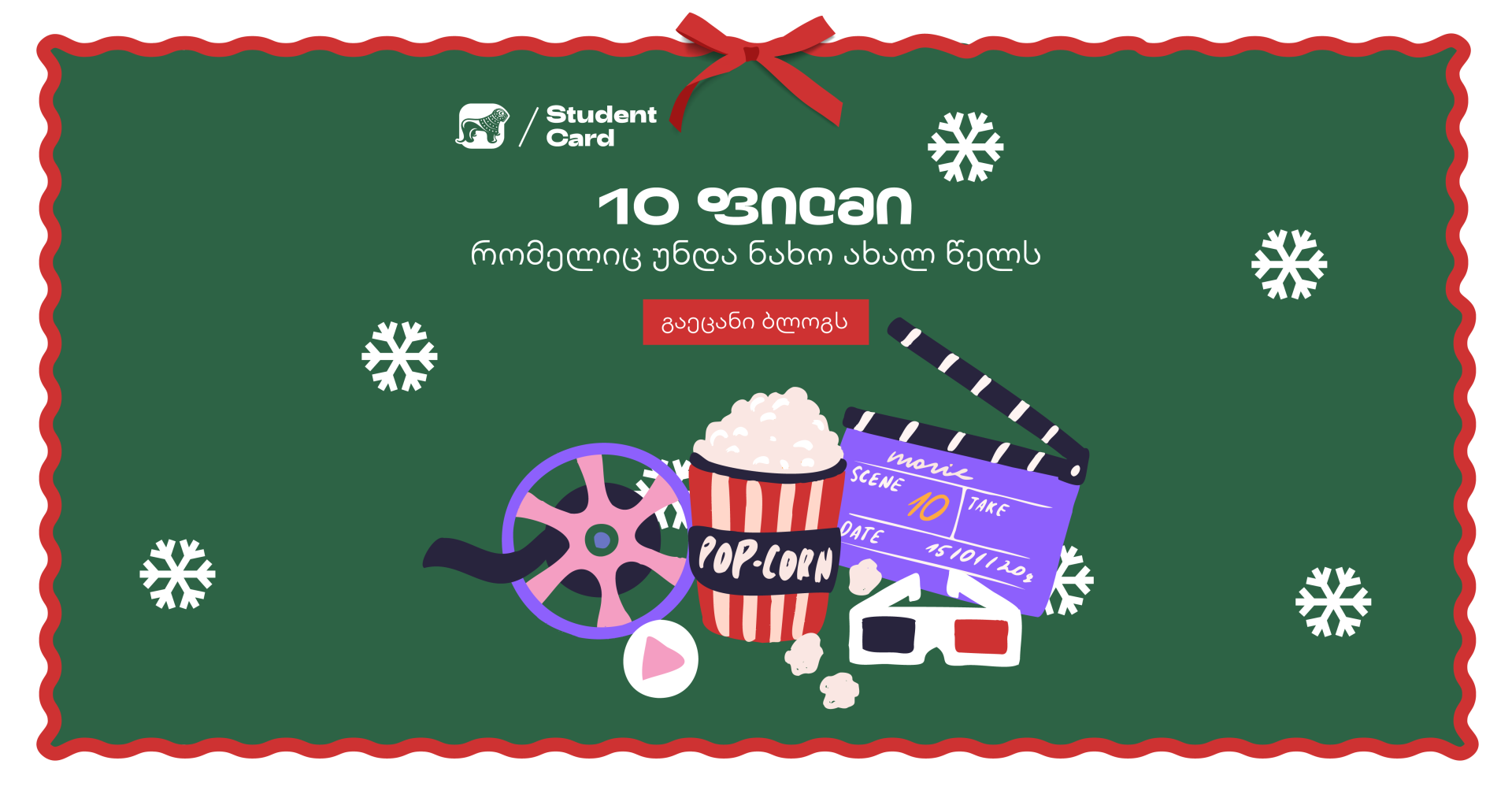 ახალი წელი ნაძვის ხესთან, საჩუქრებთან, გემრიელ საჭმელთან და, რა თქმა უნდა, განტვირთვასთან ასოცირდება. სკოლისგან, უნივერსიტეტისა თუ სამსახურისგან დასასვენებლად და საუკეთესო განწყობის შესაქმნელად კი საახალწლო ფილმების ყურებას რა სჯობს?