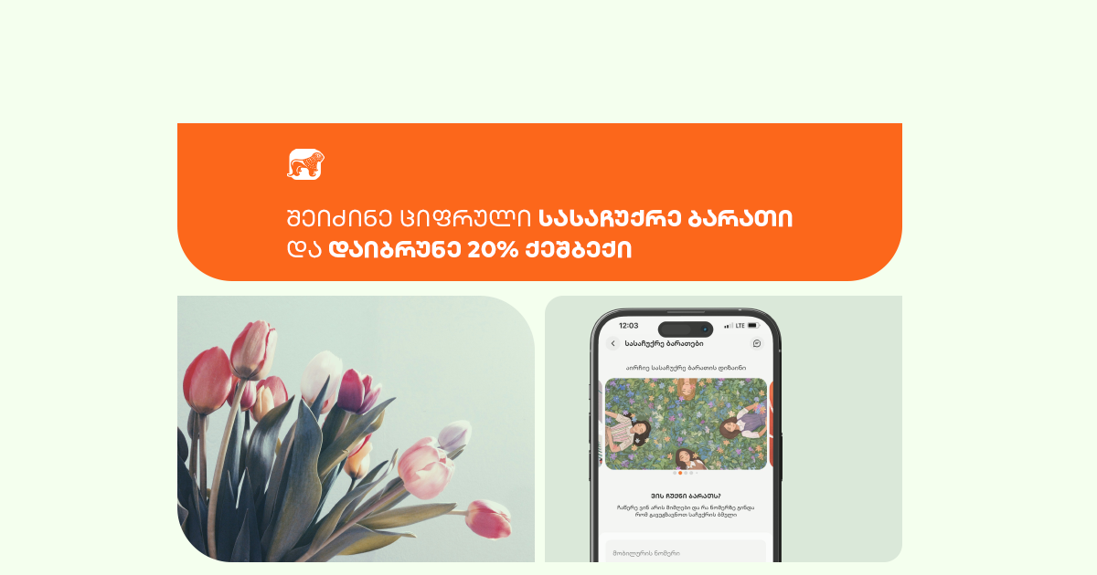 თანაც მხოლოდ ეს არ არის: 3 და 8 მარტისთვის ვაუჩერის შეძენისას განსაკუთრებული შეთავაზება გელოდება. 1-დან 8 მარტის ჩათვლით Gift Card-ის შეძენის შემთხვევაში გადახდილი თანხის 20% 3 სამუშაო დღის ვადაში უკან დაგიბრუნდება, ქეშბექის ლიმიტი კი 50 ლარია. გაითვალისწინე, რომ აქციის ფარგლებში თანხა დაუბრუნდება პირველ 1 000 მომხმარებელს, ამიტომ უნდა იჩქარო!