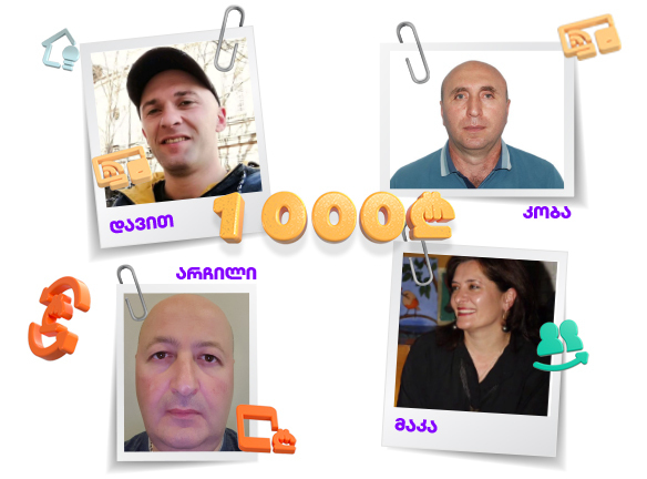 დავითი, კობა, მაკა, არჩილი და როენა ყოველდღე მომგებიანი მობილბანკის გამარჯვებულები გახდნენ და თითოეულმა მოიგო 1 000 ლარი.