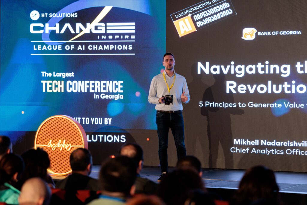 ვაჟა მანტუამ, საქართველოს ბანკის IT დირექტორმა, მთავარ სცენაზე ისაუბრა, რამდენად მნიშვნელოვანია ნებისმიერი ორგანიზაციისთვის ფეხი აუწყოს ხელოვნური ინტელექტის მოტანილ ცვლილებებს: