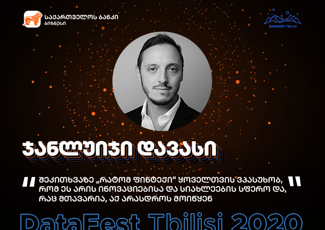 სწორედ ამ სფეროში მოღვაწეობს DataFest Tbilisi 2020-ის ერთ-ერთი სპიკერი — ჯანლუიჯი დავასი, რომელიც პროფესიით კომპიუტერული ინჟინერია. ის წარმოშობით იტალიიდანაა. სწავლის დასრულებისთანავე, რამდენიმე წლით ლონდონში გადავიდა საცხოვრებლად, სადაც ჩამოუყალიბდა პროგრამული უზრუნველყოფის ინჟინერიის უნარ-ჩვევები. ამის შემდეგ, 2014 წელს, ის ბერლინში გადასახლდა, სადაც უკვე ფინტექის სამყაროში ამოყო თავი. მისი საქმიანობა საბანკო სფეროს, ხელოვნურ ინტელექტსა და ფინტექს მოიცავს.