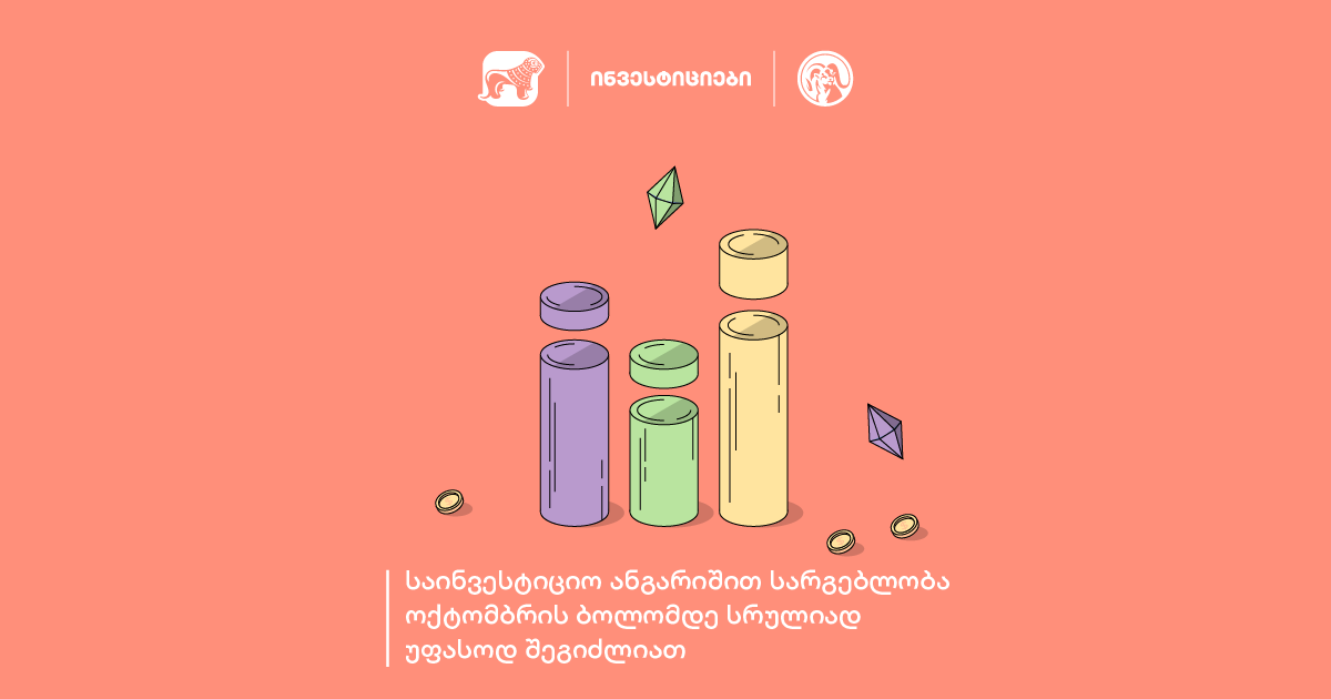 აქციის ფარგლებში, 31 დეკემბრამდე შესაძლებლობა გაქვთ სრულიად უფასოდ ისარგებლოთ საქართველოს ბანკის მიერ შექმნილი საინვესტიციო მოდულით. ამ პერიოდის განმავლობაში არ მოგიწევთ არც ვაჭრობის საკომისიოს და არც საინვესტიციო ანგარიშის მომსახურების ყოველთვიური საკომისიოს გადახდა.